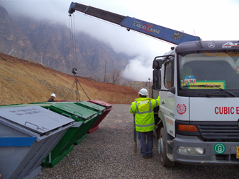 The equipment is designed to lift the containers are made according to DIN 30720 on its platform mounted